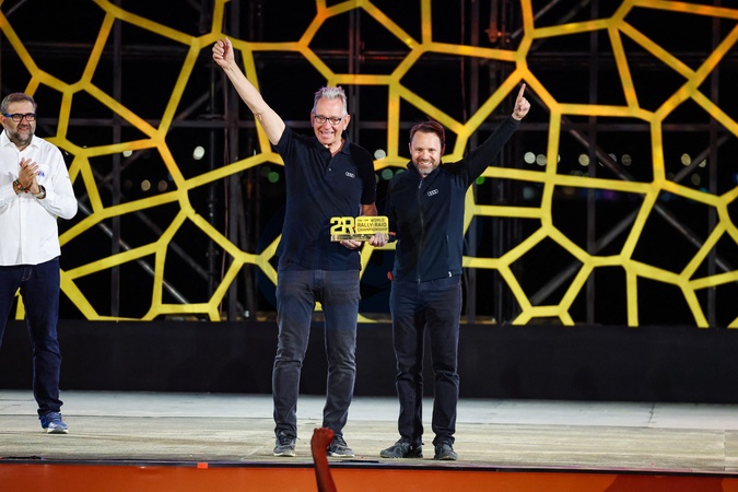 Audi Sport W2RC Manufacturer winners - Cérémonie de remise des trophées à l'issue du Dakar 2024 à Yanbu (Arabie Saoudite), le 19 janvier 2024. L'Espagnol C.Sainz remporte le Dakar 2024 devant le Belge G.De Mevius et le Français S.Loeb. © Florent Gooden / Panoramic / Bestimage Trophy presentation ceremony at the end of the Dakar 2024 in Yanbu (Saudi Arabia), January 19, 2024. The Spaniard C.Sainz wins the Dakar 2024 ahead of the Belgian G.De Mevius and the Frenchman S.Loeb.