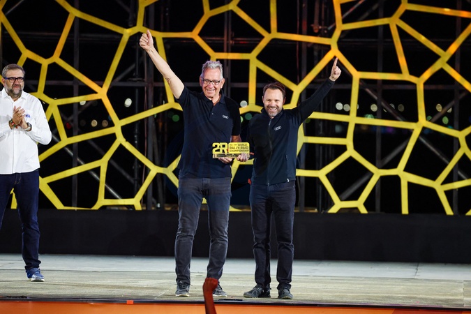 Audi Sport W2RC Manufacturer winners - Cérémonie de remise des trophées à l'issue du Dakar 2024 à Yanbu (Arabie Saoudite), le 19 janvier 2024. L'Espagnol C.Sainz remporte le Dakar 2024 devant le Belge G.De Mevius et le Français S.Loeb. © Florent Gooden / Panoramic / Bestimage Trophy presentation ceremony at the end of the Dakar 2024 in Yanbu (Saudi Arabia), January 19, 2024. The Spaniard C.Sainz wins the Dakar 2024 ahead of the Belgian G.De Mevius and the Frenchman S.Loeb.