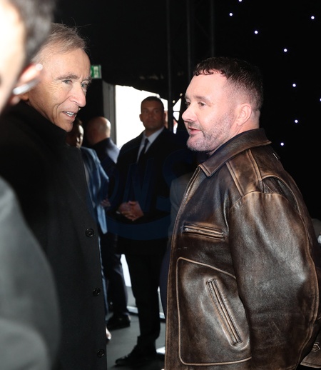 Bernard Arnault et Kim Jones posent après le Défilé Dior Collection Homme Prêt-à-Porter Automne/Hiver 2024-2025 lors de la Fashion Week de Paris (PFW), à l'École Miliatire, Place Fontenoy, à Paris, France, le 19 janvier 2024. © Bertrand Rindoff/Bestimage Celebs attend the Dior Men's Fashion Show, Fall-Winter 2024/2025 Collection as part of Paris Fashion Week, France, on January 19, 2024.