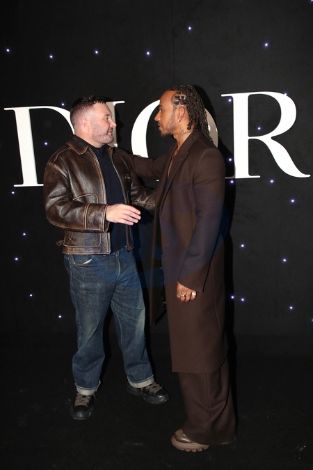 Kim Jones et Lewis Hamilton posent après le Défilé Dior Collection Homme Prêt-à-Porter Automne/Hiver 2024-2025 lors de la Fashion Week de Paris (PFW), à l'École Miliatire, Place Fontenoy, à Paris, France, le 19 janvier 2024. © Bertrand Rindoff/Bestimage Celebs attend the Dior Men's Fashion Show, Fall-Winter 2024/2025 Collection as part of Paris Fashion Week, France, on January 19, 2024.
