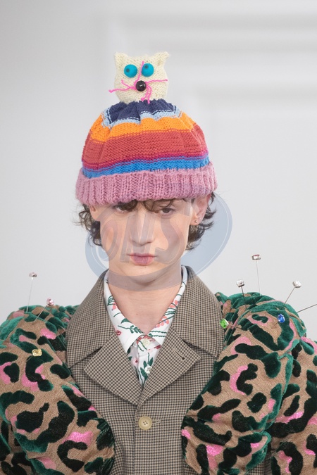 Walter Van Beirendonck Model On Catwalk, Men, Paris Fashion Week 2024 Man Ready To Wear For Fall Winter, Defile, Fashion Show Runway Collection, Pret A Porter, Modelwear, Modeschau, Man, Laufsteg Herbst France CloseUp accessories details catwalk fashion outlook beauty runway men parisPARMFW24, Credit:www.fashionpps.com / Avalon