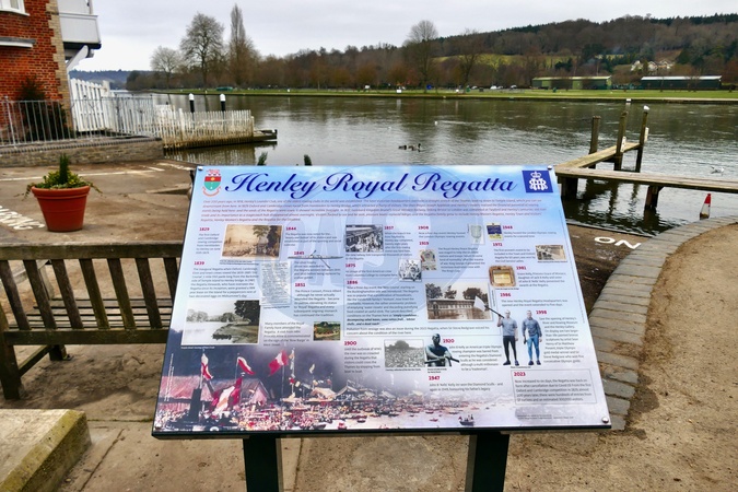 A new information board has been unveiled to explain the history of the Henley Royal Regatta. The plaque in Riverside includes important dates in the history of the town from 1818 to 2023.These include 1829, when the first Boat Race was held on the Henley reach, 1857, when the branch rail line from Twyford to Henley was completed, and 1981, when Princess Grace of Monaco presented the prizes at the regatta., Credit:Geoffrey Swaine / Avalon