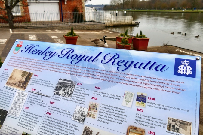 A new information board has been unveiled to explain the history of the Henley Royal Regatta. The plaque in Riverside includes important dates in the history of the town from 1818 to 2023.These include 1829, when the first Boat Race was held on the Henley reach, 1857, when the branch rail line from Twyford to Henley was completed, and 1981, when Princess Grace of Monaco presented the prizes at the regatta., Credit:Geoffrey Swaine / Avalon