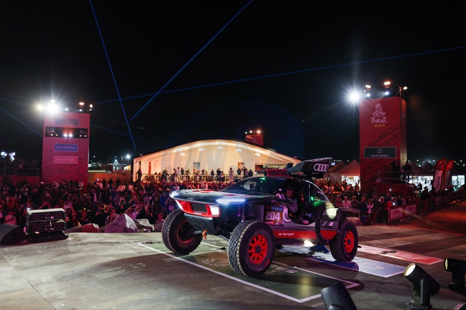 204 SAINZ Carlos (spa), CRUZ Lucas (spa), Team Audi Sport, Audi RS Q E-Tron E2, FIA Ultimate, FIA W2RC, action during the Final Podium of the Dakar 2024 on January 19, 2024 in Yanbu, Saudi Arabia. © DPPI/Panoramic/Bestimage