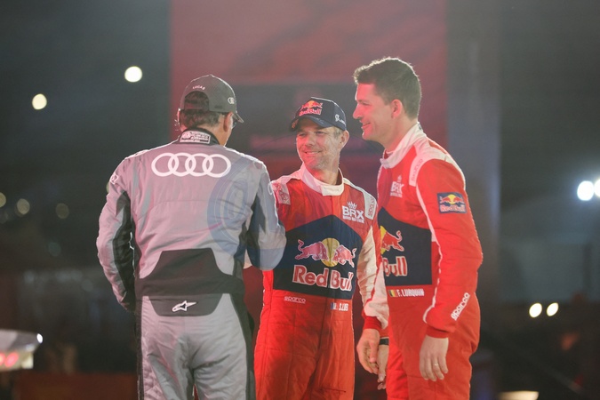 LOEB Sébastien (fra), Bahrain Raid Xtreme, Prodrive Hunter, FIA Ultimate, CRUZ Lucas (spa), Team Audi Sport, Audi RS Q E-Tron E2, FIA Ultimate, FIA W2RC, portrait during the Final Podium of the Dakar 2024 on January 19, 2024 in Yanbu, Saudi Arabia. © DPPI/Panoramic/Bestimage