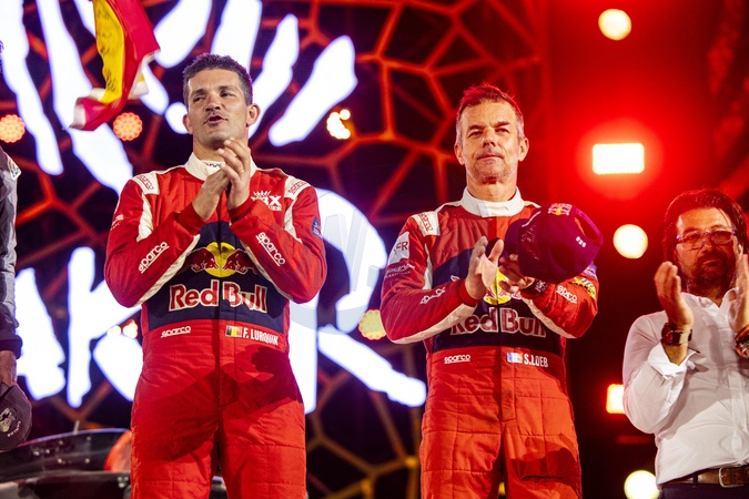 203 LOEB Sébastien (fra), LURQUIN Fabian (bel), Bahrain Raid Xtreme, Prodrive Hunter, FIA Ultimate, portrait during the Final Podium of the Dakar 2024 on January 19, 2024 in Yanbu, Saudi Arabia. © DPPI/Panoramic/Bestimage