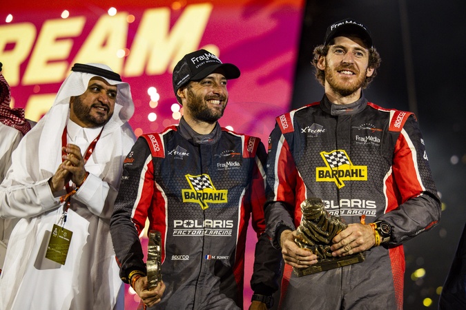 411 DE SOULTRAIT Xavier (fra), BONNET Martin (fra), Sébastien Loeb Racing - Bardahl Team, Polaris RZR Pro R, FIA SSV, portrait during the Final Podium of the Dakar 2024 on January 19, 2024 in Yanbu, Saudi Arabia. © DPPI/Panoramic/Bestimage