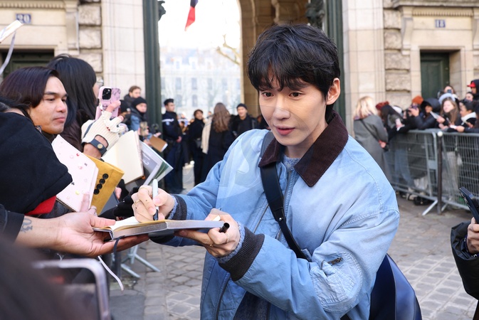 Arrivées au défilé Loewe Collection Homme Prêt-à-Porter Automne/Hiver 2024-2025 lors de la Fashion Week de Paris (PFW)
