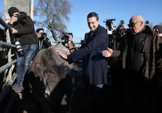 Jordan Bardella, przewodniczący Zlotu Narodowego, odwiedza rolników w Queyrac