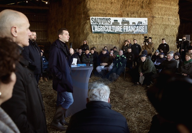 Jordan Bardella, président du Rassemblement national, en visite auprès des agriculteurs de Queyrac