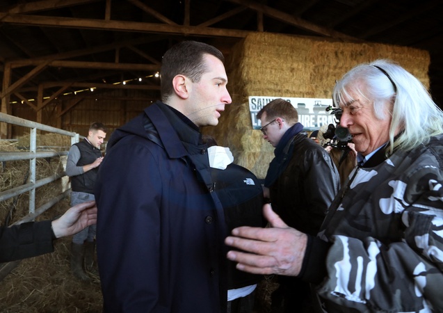 Jordan Bardella, przewodniczący Zlotu Narodowego, odwiedza rolników w Queyrac