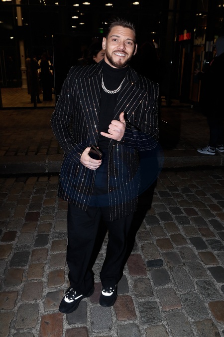 Exclusif - Rayane Bensetti - Arrivées au défilé Balmain Collection Homme Prêt-à-Porter Automne/Hiver 2024-2025 lors de la Fashion Week de Paris (PFW), à la Grande Halle de la Villette à Paris, France, le 20 janvier 2024. © Christophe Clovis/Bestimage
