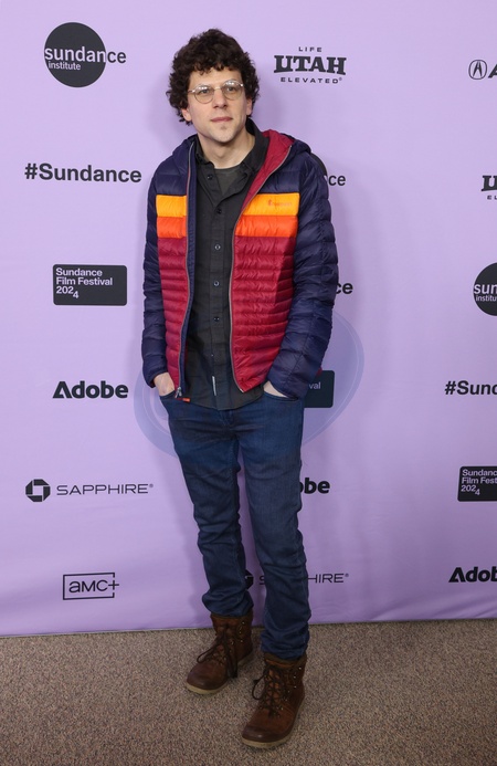 Jesse Eisenberg arriving to the "Sasquatch Sunset” premiere during the 2024 Sundance Film Festival held at the Library Center Theatre on January 19, 2024 in Park City, Utah.© JPA / AFF-USA.com