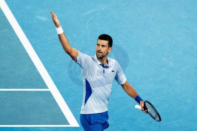 Novak Djokovic (SRB) à la huitièmes de finale de l'Open d'Australie, à Melbourne, Australie, le 21 janvier 2024. © Virginie Bouyer /Panoramic/Bestimage Round four singles match against Magdalena Frech of Poland during the 2024 Australian Open at Melbourne Park on January 21, 2024 in Melbourne, Australia.