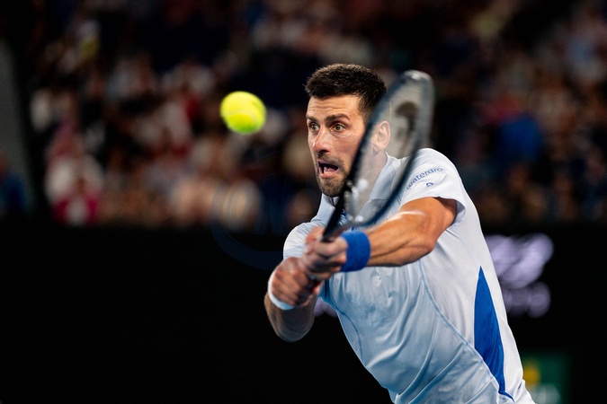 Novak Djokovic (SRB) à la huitièmes de finale de l'Open d'Australie, à Melbourne, Australie, le 21 janvier 2024. © Virginie Bouyer /Panoramic/Bestimage Round four singles match against Magdalena Frech of Poland during the 2024 Australian Open at Melbourne Park on January 21, 2024 in Melbourne, Australia.