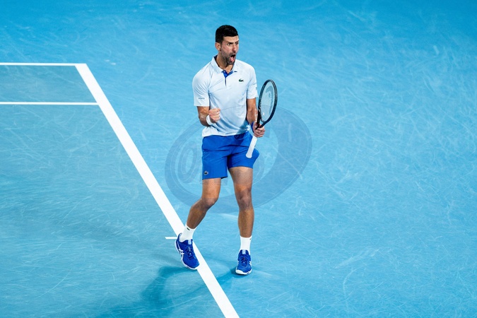 Novak Djokovic (SRB) à la huitièmes de finale de l'Open d'Australie, à Melbourne, Australie, le 21 janvier 2024. © Virginie Bouyer /Panoramic/Bestimage Round four singles match against Magdalena Frech of Poland during the 2024 Australian Open at Melbourne Park on January 21, 2024 in Melbourne, Australia.