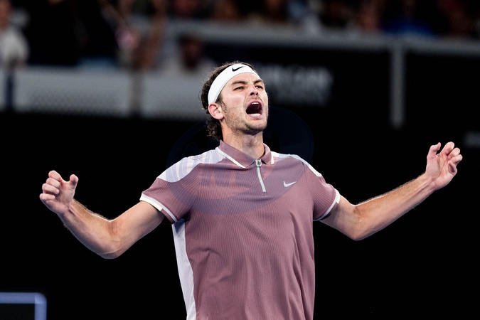 Taylor Fritz (USA) à la huitièmes de finale de l'Open d'Australie, à Melbourne, Australie, le 21 janvier 2024. © Virginie Bouyer /Panoramic/Bestimage Round four singles match against Magdalena Frech of Poland during the 2024 Australian Open at Melbourne Park on January 21, 2024 in Melbourne, Australia.