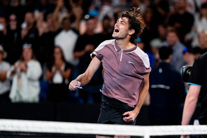 Taylor Fritz (USA) à la huitièmes de finale de l'Open d'Australie, à Melbourne, Australie, le 21 janvier 2024. © Virginie Bouyer /Panoramic/Bestimage Round four singles match against Magdalena Frech of Poland during the 2024 Australian Open at Melbourne Park on January 21, 2024 in Melbourne, Australia.
