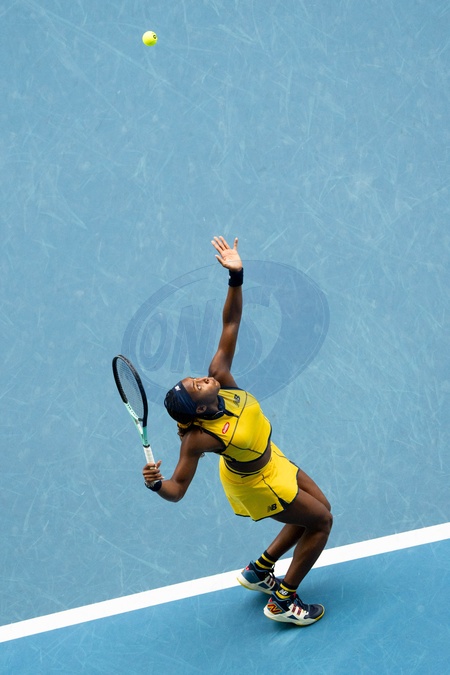 Coco Gauff (USA) à la huitièmes de finale de l'Open d'Australie, à Melbourne, Australie, le 21 janvier 2024. © Virginie Bouyer /Panoramic/Bestimage Round four singles match against Magdalena Frech of Poland during the 2024 Australian Open at Melbourne Park on January 21, 2024 in Melbourne, Australia.