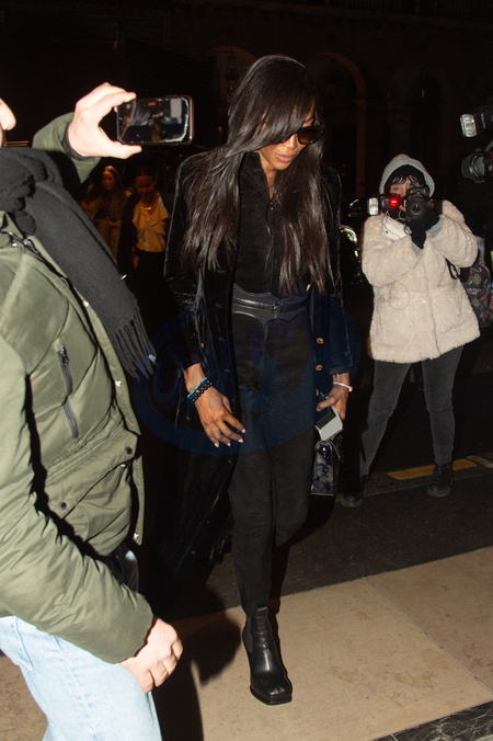 No Credit - Bi - Naomi Campbell arrive à l'hôtel Costes lors de la fashion week à Paris le 21 janvier 2024. No Credit - BI Naomi Campbell in Paris arrives at the Costes Hotel during Paris Fashion Week on 21 January 2024.