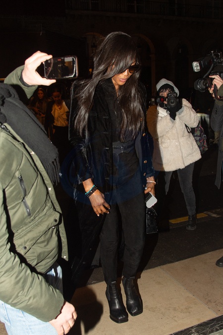 No Credit - Bi - Naomi Campbell arrive à l'hôtel Costes lors de la fashion week à Paris le 21 janvier 2024. No Credit - BI Naomi Campbell in Paris arrives at the Costes Hotel during Paris Fashion Week on 21 January 2024.