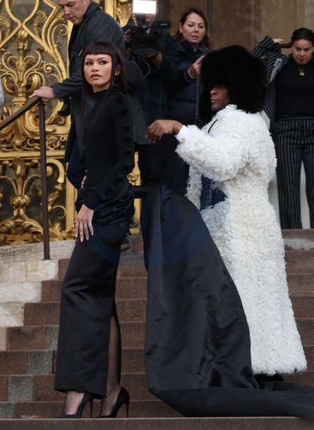 Zendaya - Arrivées au défilé Schiaparelli Haute Couture Printemps/Été 2024 dans le cadre de la Fashion Week de Paris le 22 janvier 2024. © Denis Guignebourg/Bestimage Arrivals at the Schiaparelli Haute Couture Spring/Summer 2024 show as part of Paris Fashion Week on January 22, 2024.