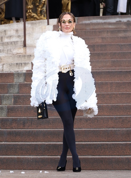 Jennifer Lopez quitte le défilé Schiaparelli Haute Couture Printemps/Été 2024 dans le cadre de la Fashion Week de Paris le 22 janvier 2024. © Dins Guignebourg/Bestimage Jennifer Lopez leaves the Schiaparelli Haute Couture Spring/Summer 2024 show as part of Paris Fashion Week in Paris on January 22, 2024.