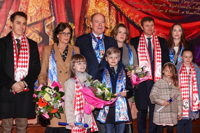 No Tabloïd - Louis Ducruet, la princesse Stéphanie de Monaco, le prince Albert II de Monaco, la princesse Gabriella de Monaco, comtesse de Carladès, le prince Jacques de Monaco, marquis des Baux, Camille Gottlieb, Gareth Wittstock, sa femme Roisin et leurs enfants Kaïa et Bodie - La famille princière lors de la 46ème édition du festival international du cirque de Monte-Carlo, à Monaco, le 21 janvier 2024. © Claudia Albuquerque/Bestimage No Tabloïds The Princely family during the 46th Monte-Carlo International Circus Festival in Monaco, on January 21st, 2024.