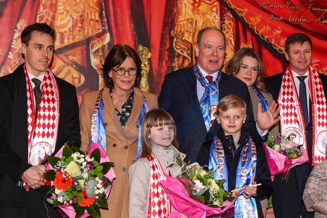 No Tabloïd - Louis Ducruet, la princesse Stéphanie de Monaco, le prince Albert II de Monaco, la princesse Gabriella de Monaco, comtesse de Carladès, le prince Jacques de Monaco, marquis des Baux, Camille Gottlieb, Gareth Wittstock, sa femme Roisin et leurs enfants Kaïa et Bodie - La famille princière lors de la 46ème édition du festival international du cirque de Monte-Carlo, à Monaco, le 21 janvier 2024. © Claudia Albuquerque/Bestimage No Tabloïds The Princely family during the 46th Monte-Carlo International Circus Festival in Monaco, on January 21st, 2024.