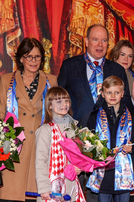 No Tabloïd - La princesse Stéphanie de Monaco, le prince Albert II de Monaco, la princesse Gabriella de Monaco, comtesse de Carladès, le prince Jacques de Monaco, marquis des Baux et Camille Gottlieb - La famille princière lors de la 46ème édition du festival international du cirque de Monte-Carlo, à Monaco, le 21 janvier 2024. © Claudia Albuquerque/Bestimage No Tabloïds The Princely family during the 46th Monte-Carlo International Circus Festival in Monaco, on January 21st, 2024.