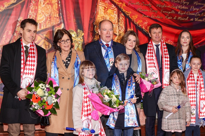 No Tabloïd - Louis Ducruet, la princesse Stéphanie de Monaco, le prince Albert II de Monaco, la princesse Gabriella de Monaco, comtesse de Carladès, le prince Jacques de Monaco, marquis des Baux, Camille Gottlieb, Gareth Wittstock, sa femme Roisin et leurs enfants Kaïa et Bodie - La famille princière lors de la 46ème édition du festival international du cirque de Monte-Carlo, à Monaco, le 21 janvier 2024. © Claudia Albuquerque/Bestimage No Tabloïds The Princely family during the 46th Monte-Carlo International Circus Festival in Monaco, on January 21st, 2024.