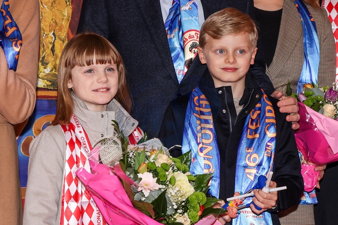 No Tabloïd - La princesse Gabriella de Monaco, comtesse de Carladès et le prince Jacques de Monaco, marquis des Baux, Camille Gottlieb - La famille princière lors de la 46ème édition du festival international du cirque de Monte-Carlo, à Monaco, le 21 janvier 2024. © Claudia Albuquerque/Bestimage No Tabloïds The Princely family during the 46th Monte-Carlo International Circus Festival in Monaco, on January 21st, 2024.
