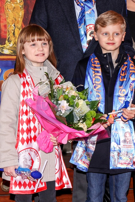 No Tabloïd - La princesse Gabriella de Monaco, comtesse de Carladès et le prince Jacques de Monaco, marquis des Baux, Camille Gottlieb - La famille princière lors de la 46ème édition du festival international du cirque de Monte-Carlo, à Monaco, le 21 janvier 2024. © Claudia Albuquerque/Bestimage No Tabloïds The Princely family during the 46th Monte-Carlo International Circus Festival in Monaco, on January 21st, 2024.