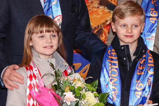 No Tabloïd - La princesse Gabriella de Monaco, comtesse de Carladès et le prince Jacques de Monaco, marquis des Baux, Camille Gottlieb - La famille princière lors de la 46ème édition du festival international du cirque de Monte-Carlo, à Monaco, le 21 janvier 2024. © Claudia Albuquerque/Bestimage No Tabloïds The Princely family during the 46th Monte-Carlo International Circus Festival in Monaco, on January 21st, 2024.