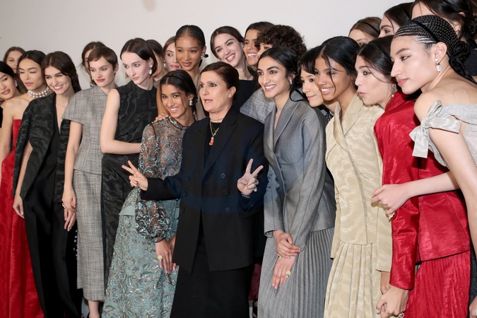 Maria Grazia Chiuri pose Backstage avec ses Models après la Défilé de Mode Christian Dior, Collection Haute Couture Printemps/Été 2024 - Greetings, dans le cadre de la Fashion Week de Paris, France, le 22 Janvier 2024. © Bertrand Rindoff / Bestimage Celebs attend the Christian Dior Haute Couture Spring/Summer 2024 show as part of Paris Fashion Week on January 22, 2024 in Paris, France.