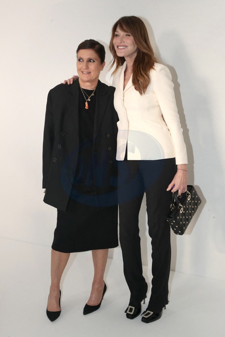 Maria Grazia Chiuri et Carla Bruni Sarkozy posent Backstage après la Défilé de Mode Christian Dior, Collection Haute Couture Printemps/Été 2024 - Greetings, dans le cadre de la Fashion Week de Paris, France, le 22 Janvier 2024. © Bertrand Rindoff / Bestimage Celebs attend the Christian Dior Haute Couture Spring/Summer 2024 show as part of Paris Fashion Week on January 22, 2024 in Paris, France.
