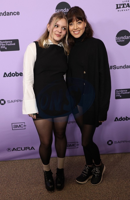 Maisy Stella and Aubrey Plaza arriving to the "My Old Ass” premiere during the 2024 Sundance Film Festival held at the Eccles Theatre on January 20, 2024 in Park City, Utah.© JPA / AFF-USA.com