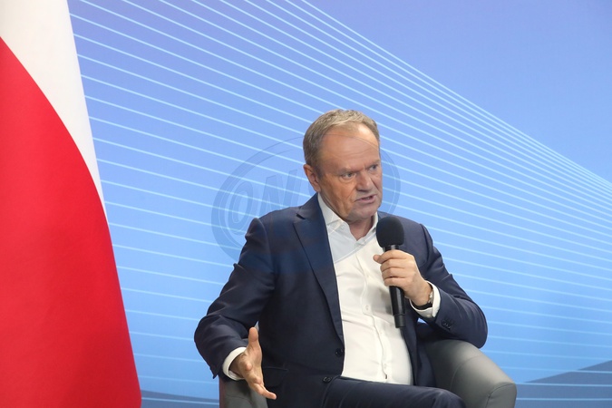 KYIV, UKRAINE - JANUARY 22, 2024 - Prime Minister of Poland Donald Tusk is seen during a joint meeting with President of Ukraine Volodymyr Zelenskyy and students at the National University of Kyiv-Mohyla Academy, Kyiv, capital of Ukraine, Credit:Volodymyr Tarasov / Avalon