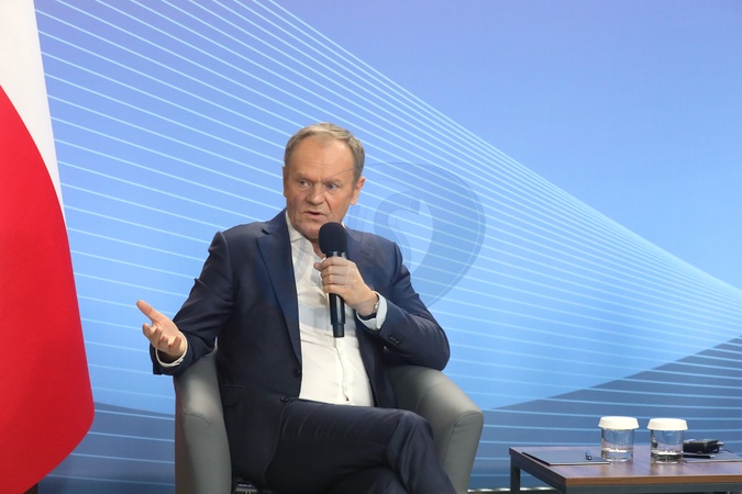 KYIV, UKRAINE - JANUARY 22, 2024 - Prime Minister of Poland Donald Tusk is seen during a joint meeting with President of Ukraine Volodymyr Zelenskyy and students at the National University of Kyiv-Mohyla Academy, Kyiv, capital of Ukraine, Credit:Volodymyr Tarasov / Avalon
