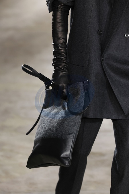Dries Van Noten Model On Catwalk, Men, Paris Fashion Week 2024 Man Ready To Wear For Fall Winter, Defile, Fashion Show Runway Collection, Pret A Porter, Modelwear, Modeschau, Man, Laufsteg Herbst France closeup details asseccories catwalk fashion outlook beauty runway men parisPARMFW24, Credit:www.fashionpps.com / Avalon