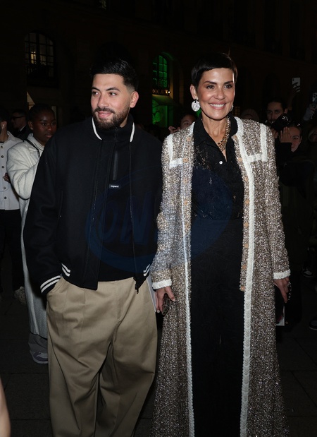 Cristina Cordula et son fils Enzo - Arrivées au défilé Giambattista Valli Haute Couture Printemps/Été 2024 dans le cadre de la Fashion Week de Paris (PFW), à l'espace Vendome, France, le 22 janvier 2024. © Denis Guignebourg/Bestimage Arrivals at the Giambattista Valli Haute Couture Spring/Summer 2024 show as part of Paris Fashion Week in Paris, France, on January 22, 2024. © Denis Guignebourg/BestImage