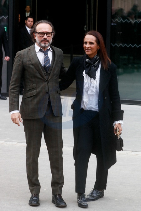 Vincent Perez et sa femme Karine Silla - Arrivées au défilé de mode Haute-Couture automne-hiver 2024/2025 "Chanel" au Grand Palais Ephémère lors de la fashion week de Paris. Le 23 janvier 2024 © Christophe Clovis / Bestimage Arrivals at the Haute-Couture fall-winter 2024/2025 "Chanel" fashion show at the Grand Palais Ephémère during the Paris fashion week. On January 23rd 2024