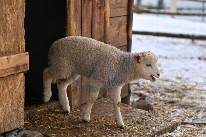 LVIV, UKRAINE - JANUARY 21, 2024 - A lamb lives in the shed in Shevchenkivskyi Hai (Shevchenko grove) on the territory of the Klymentii Sheptytskyi Museum of Folk Architecture and Rural Life, Lviv, western Ukraine., Credit:Anastasiia Smolienko / Avalon