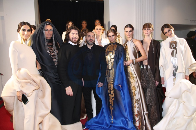 Stéphane Rolland, Ibrahim Maalouf et les Models posent à la suite du Défilé de Mode Stéphane Rolland, Collection Haute Couture Printemps/Été 2024 - Greetings, à la Salle Pleyel dans le cadre de la Fashion Week de Paris, France, le 23 Janvier 2024. © Bertrand Rindoff / Bestimage Celebs attend the Stéphane Rolland Haute Couture Spring/Summer 2024 show as part of Paris Fashion Week on January 23, 2024 in Paris, France.