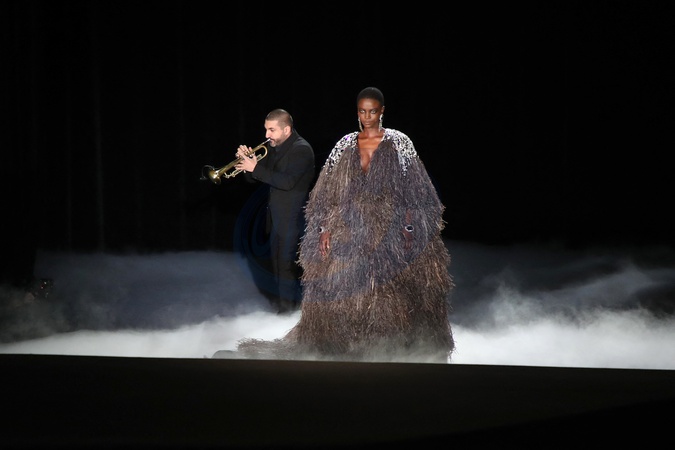 Final du défilé accompagné à la Trompette par Ibrahim Maalouf - Défilé de Mode Stéphane Rolland, Collection Haute Couture Printemps/Été 2024 - Runway, à la Salle Pleyel dans le cadre de la Fashion Week de Paris, France, le 23 Janvier 2024. © Bertrand Rindoff / Bestimage Celebs attend the Stéphane Rolland Haute Couture Spring/Summer 2024 show as part of Paris Fashion Week on January 23, 2024 in Paris, France.