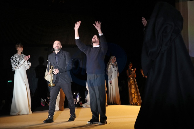 Stéphane Rolland et Ibrahim Maalouf lors du Final - Défilé de Mode Stéphane Rolland, Collection Haute Couture Printemps/Été 2024 - Runway, à la Salle Pleyel dans le cadre de la Fashion Week de Paris, France, le 23 Janvier 2024. © Bertrand Rindoff / Bestimage Celebs attend the Stéphane Rolland Haute Couture Spring/Summer 2024 show as part of Paris Fashion Week on January 23, 2024 in Paris, France.