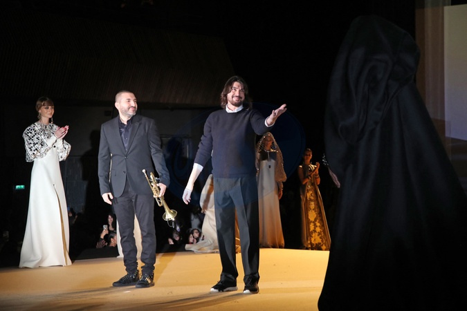 Stéphane Rolland et Ibrahim Maalouf lors du Final - Défilé de Mode Stéphane Rolland, Collection Haute Couture Printemps/Été 2024 - Runway, à la Salle Pleyel dans le cadre de la Fashion Week de Paris, France, le 23 Janvier 2024. © Bertrand Rindoff / Bestimage Celebs attend the Stéphane Rolland Haute Couture Spring/Summer 2024 show as part of Paris Fashion Week on January 23, 2024 in Paris, France.