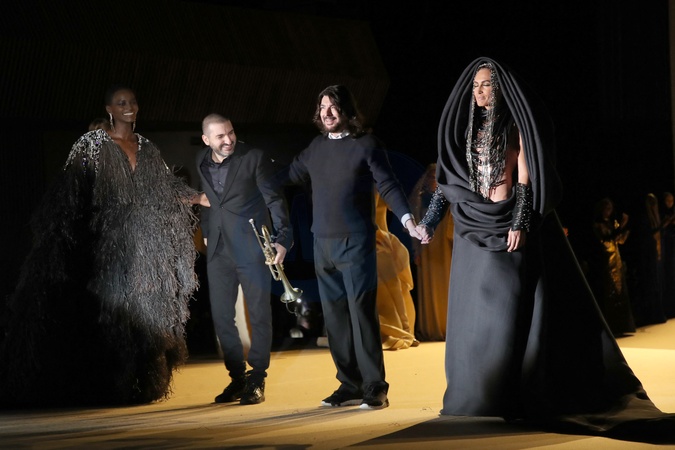 Stéphane Rolland et Ibrahim Maalouf lors du Final - Défilé de Mode Stéphane Rolland, Collection Haute Couture Printemps/Été 2024 - Runway, à la Salle Pleyel dans le cadre de la Fashion Week de Paris, France, le 23 Janvier 2024. © Bertrand Rindoff / Bestimage Celebs attend the Stéphane Rolland Haute Couture Spring/Summer 2024 show as part of Paris Fashion Week on January 23, 2024 in Paris, France.