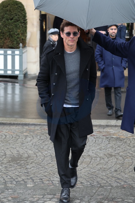James Marsden opuszcza Hôtel de Crillon w Paryżu na marginesie Tygodnia Mody Haute Couture Wiosna-Lato 2024