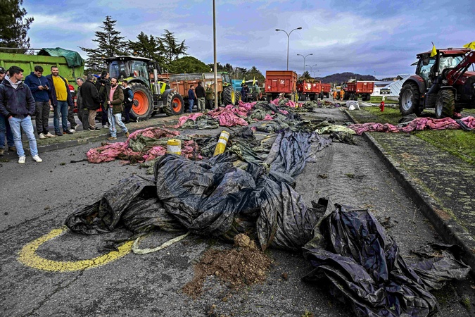 Les Agriculteurs déversent du fumier devant la Direction Départementale du Territoire à Agen, le 23 janvier 2024. © Thierry Breton / Panoramic / Bestimage Farmers dump manure in front of the Departmental Territorial Directorate in Agen, January 23, 2024.